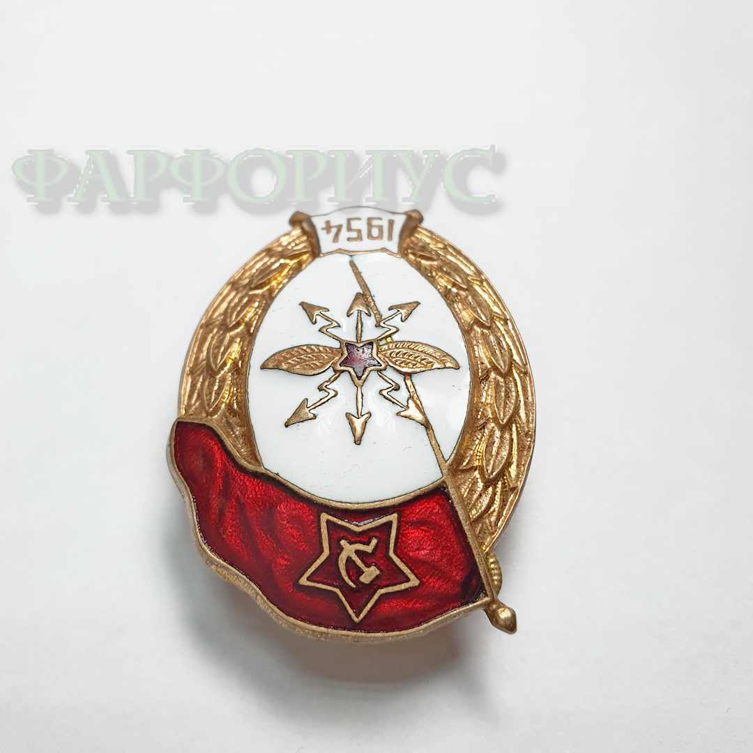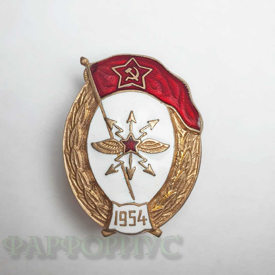 Редкий знак СССР Военное училище связи 1954 года. Ширина 27 мм, высота 35. 5 мм. Завод Победа.