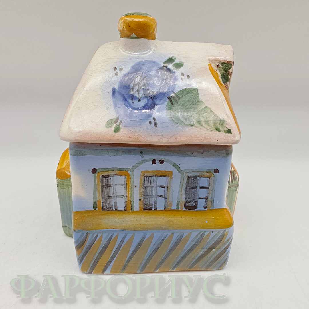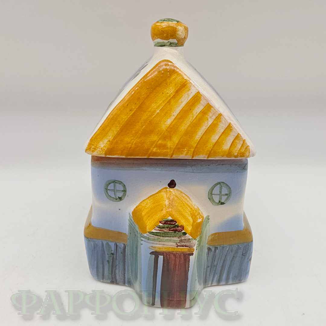 Солонка-шкатулка "Домик" (Дом). Гжель, СССР 1988 год. Высота 9 см.