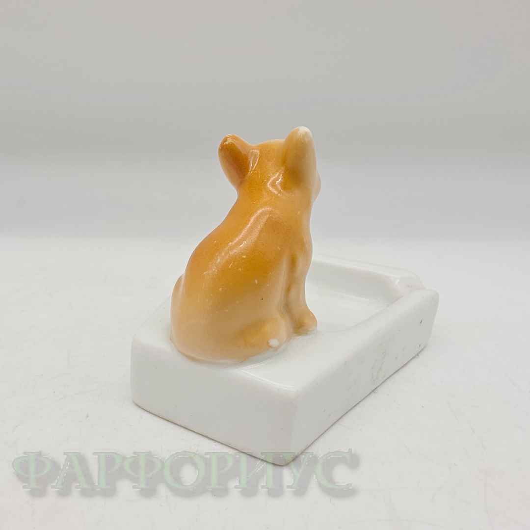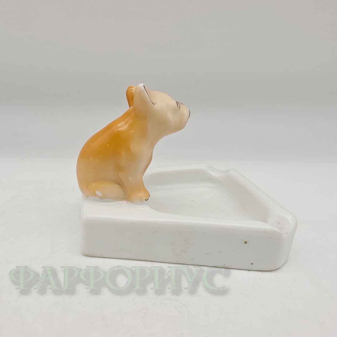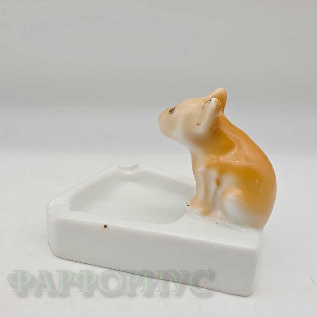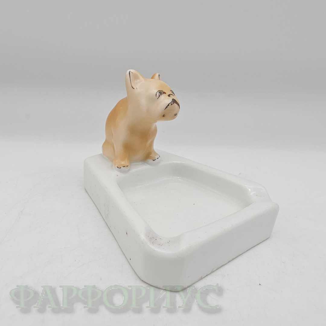 Фарфоровая пепельница советской эпохи "Бульдог" (собака) Первомайский фарфоровый завод (Песочное). СССР. Высота 5, 5 см.