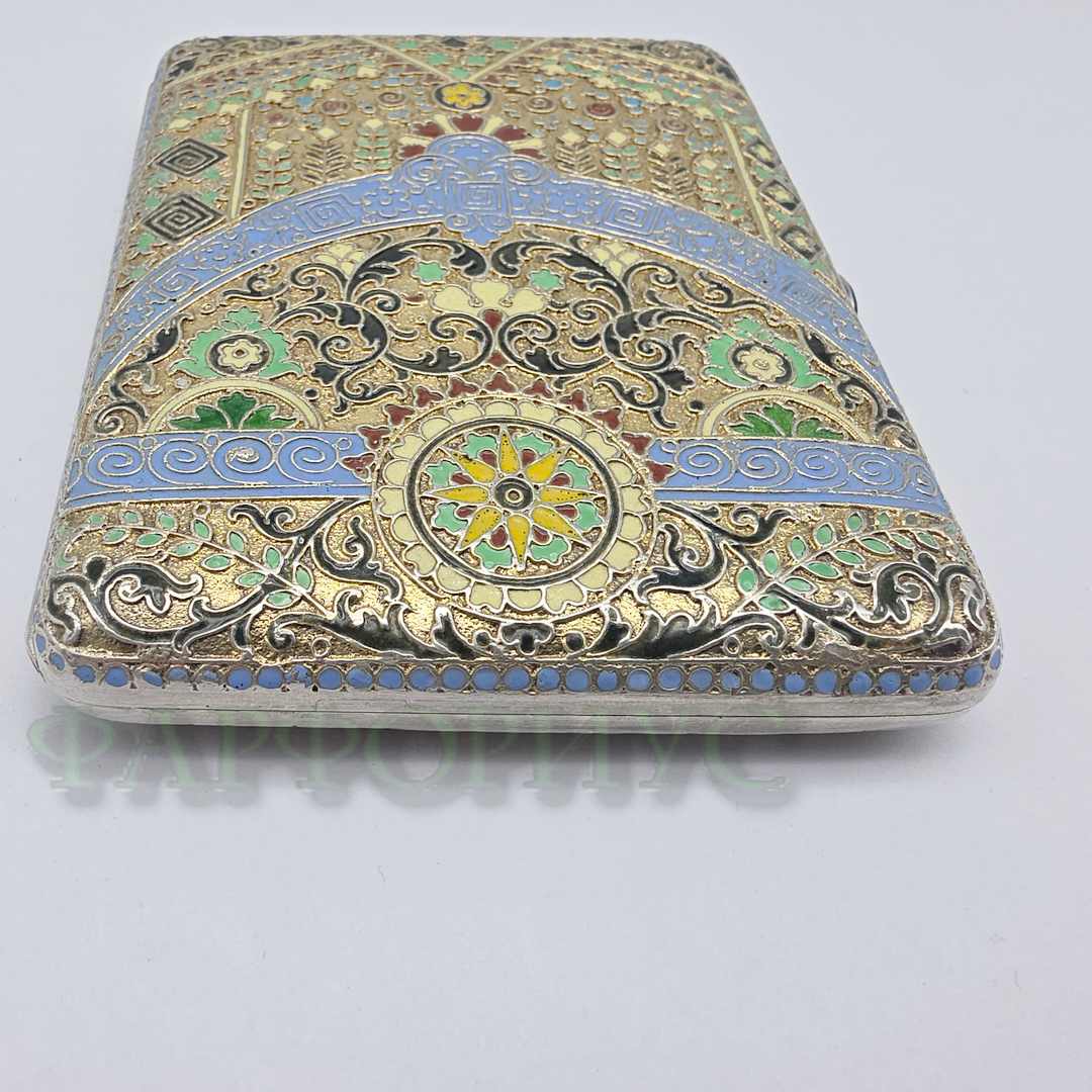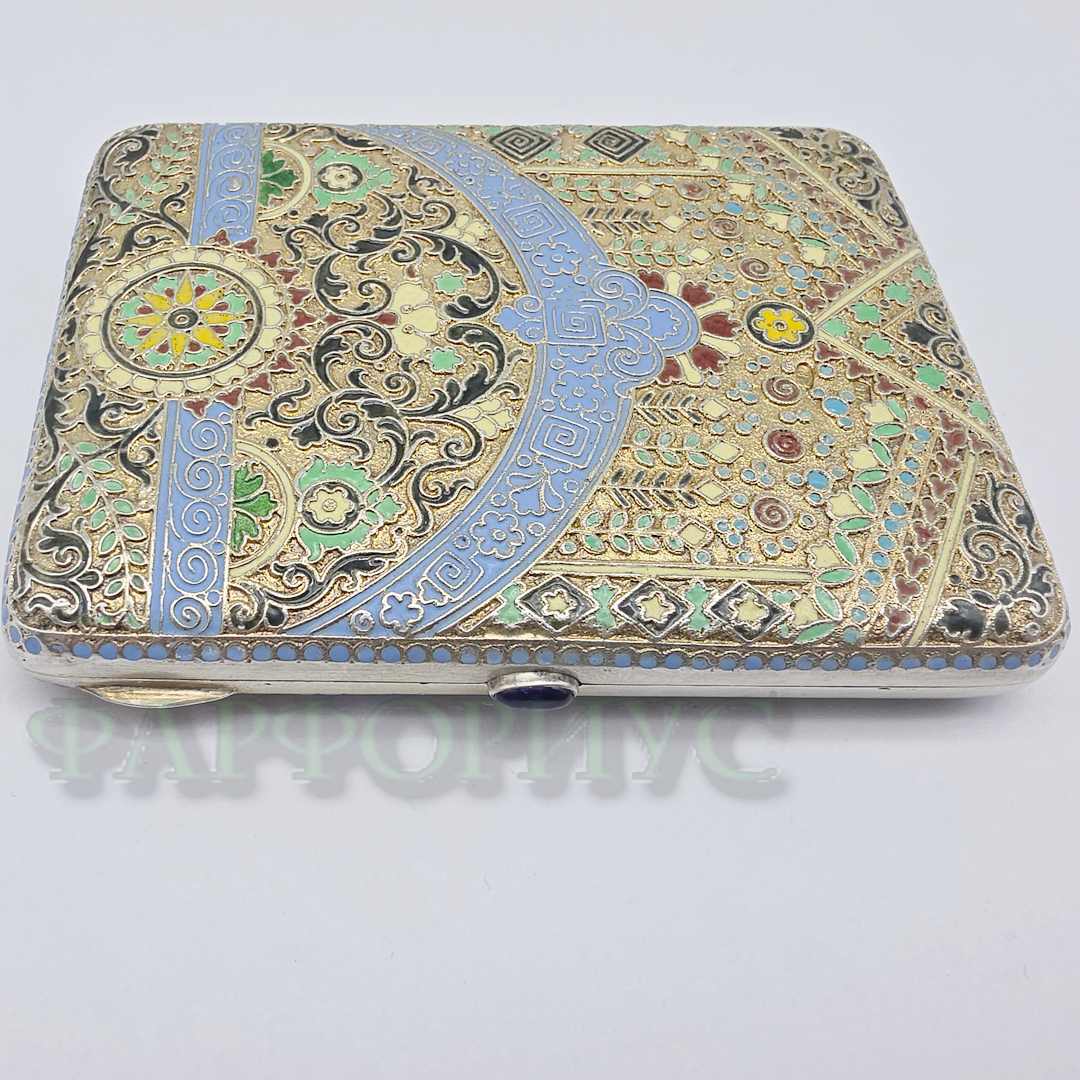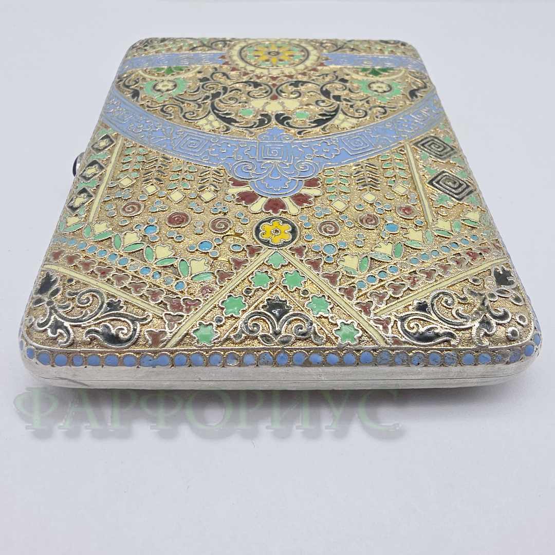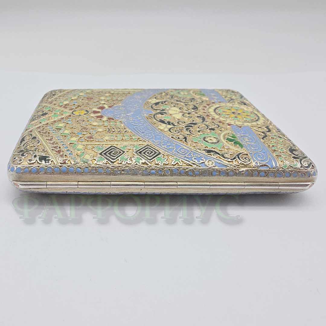 Серебряный портсигар 84 пробы с эмалями. ДС