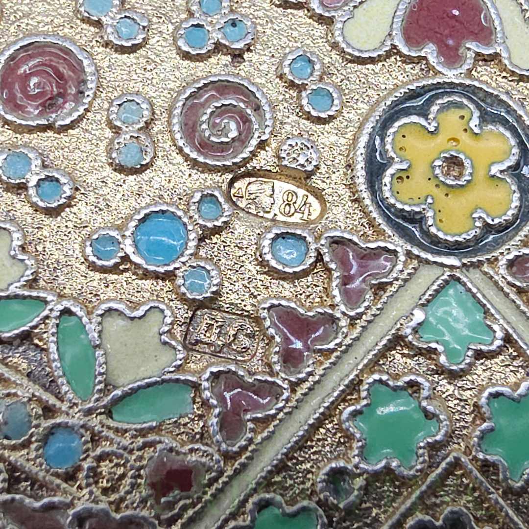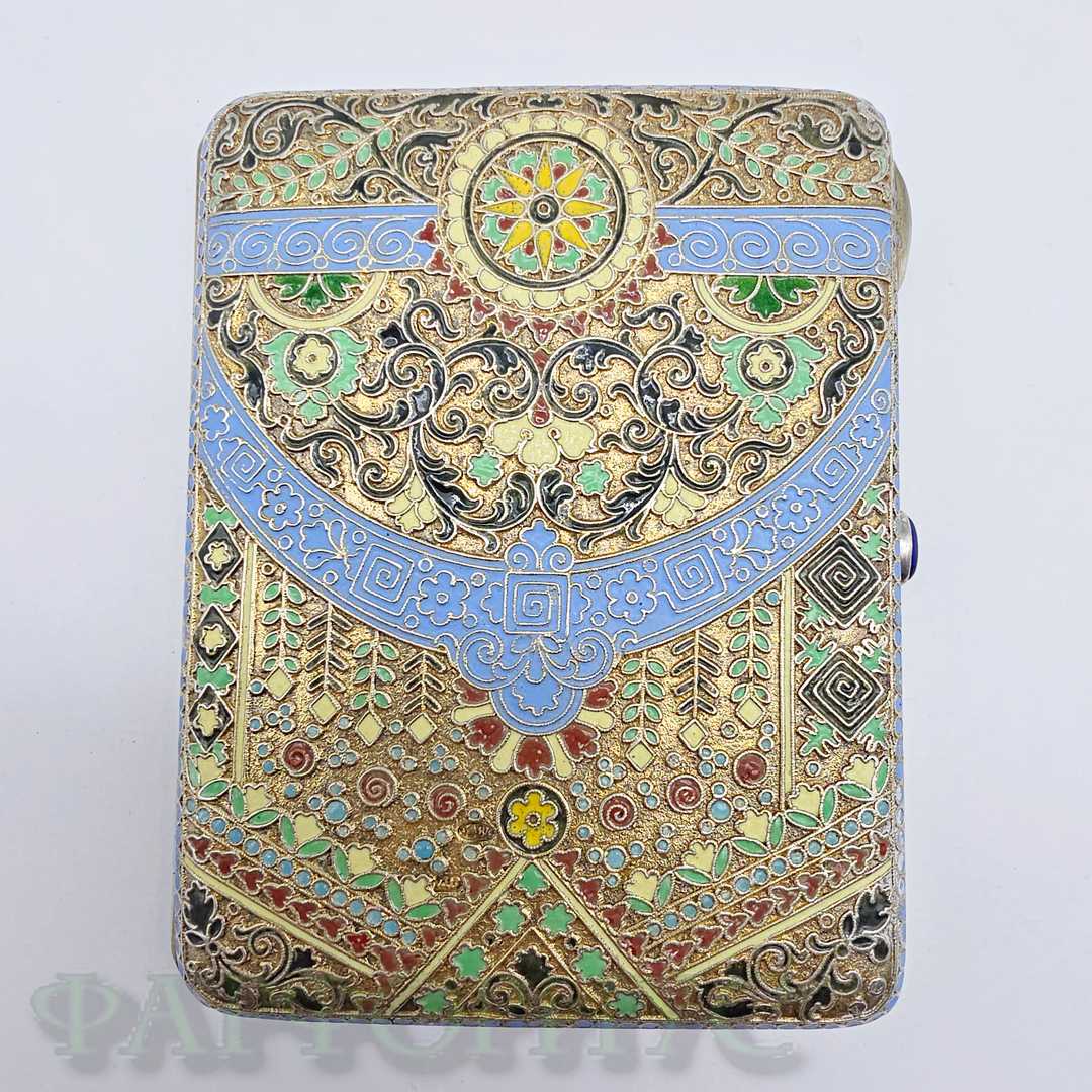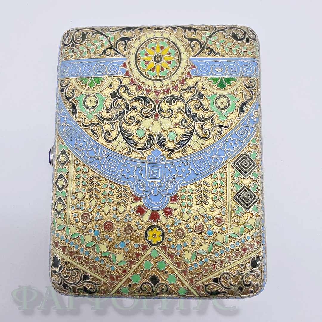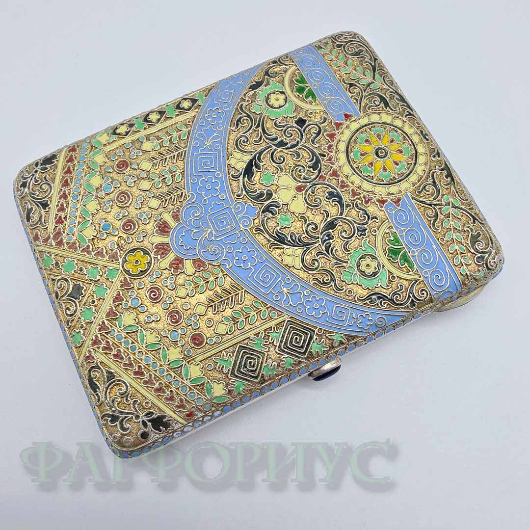 Серебряный портсигар 84 пробы с эмалями. ДС