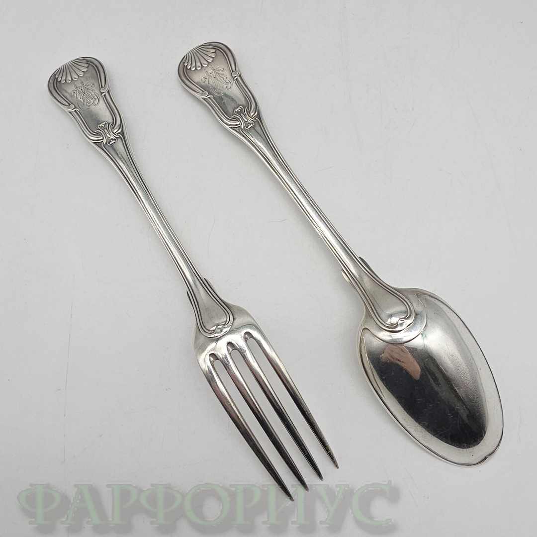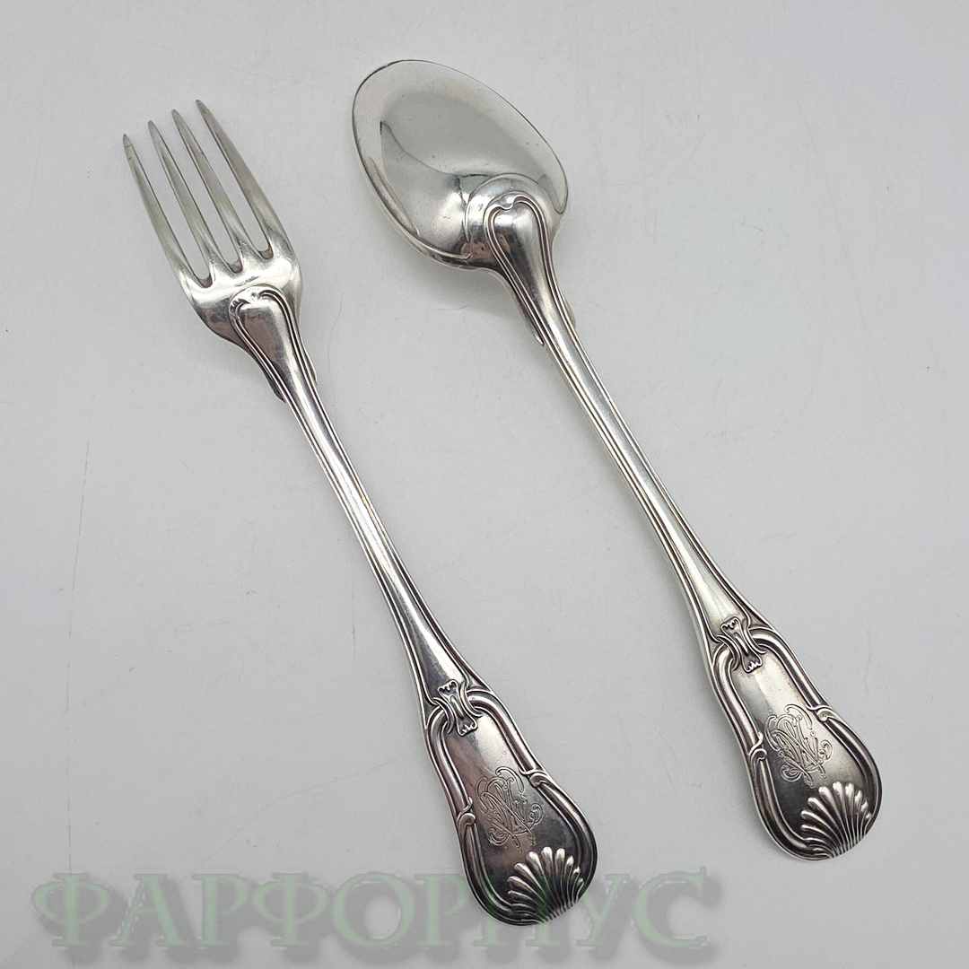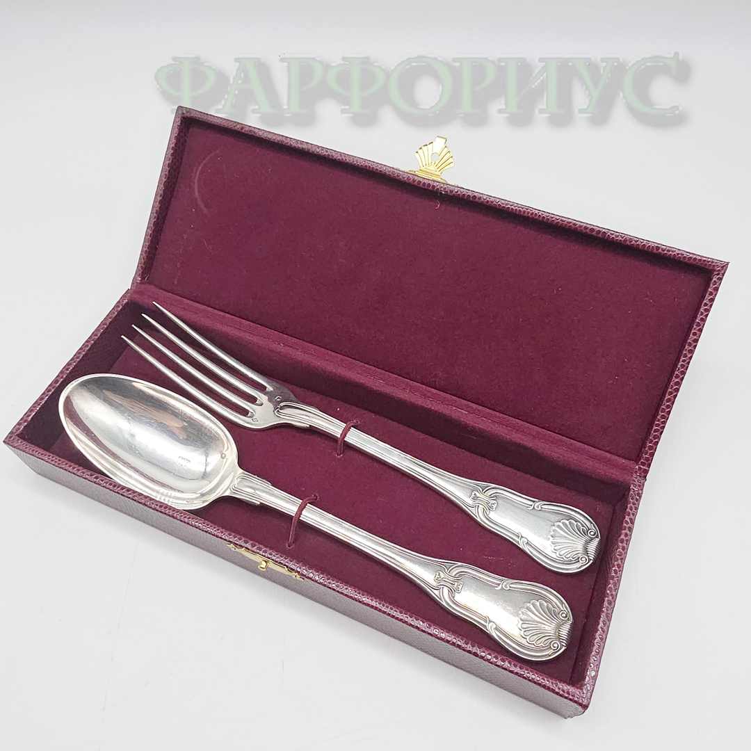Антикварный серебряный набор "Эгоист". Императорское столовое серебро эпохи правления Наполеона III, от поставщика императорского двора Ernest Cardeilhac. Серебро 950 пробы. Вес 189 грамм. Длина 21 см.